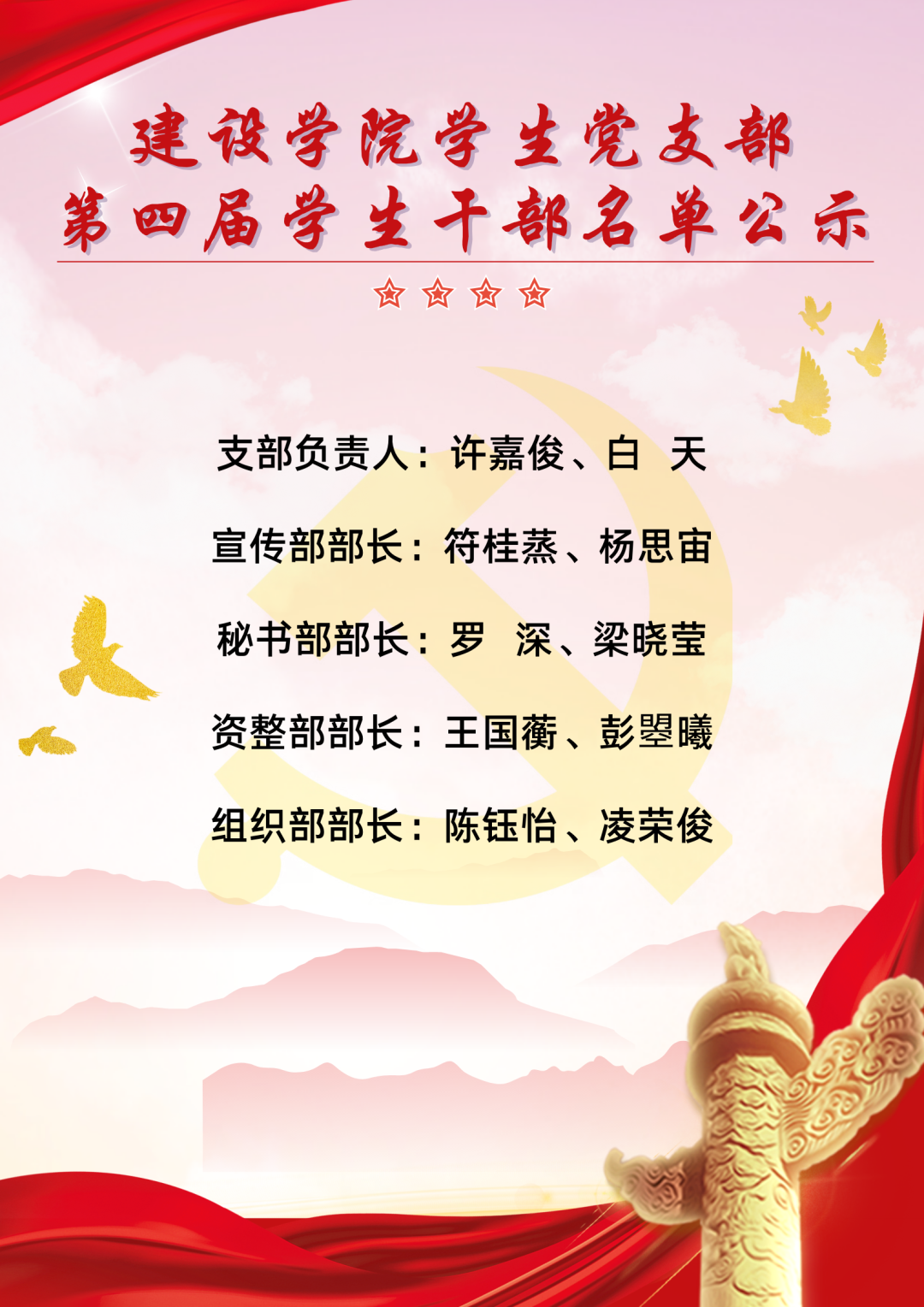 本次所有竞选成功的干部,将会有两个月的考核期,期间若是违反相关规定,则视为考核结果不合格。希望新干部们能够在接下来的工作中展示自我、提升自我,发挥模范作用,为员工党支部的发展贡献力量,也希望落选的其他同学不要灰心,始终保持热爱,向成为更优秀的自己努力前进。