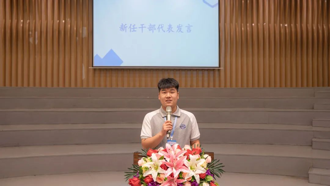 新任干部代表何泽潭,在前辈的带领下,学习到很多知识,积累了很多经验,在以后的工作中要对得起领导老师和前辈的信任,要对得起自己肩负的责任。并承诺以一颗真诚服务同学的心,良好的工作素质,扎实的工作作风,强大的号召力与凝聚力,把工作做到最好。