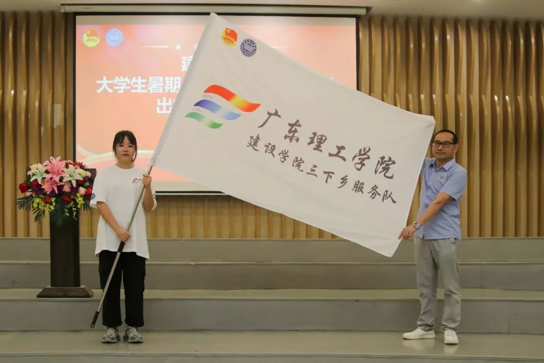 仪式上,周书记为参与出征仪式的实践队代表授旗,拉开了伟德国际victor19462022年暑期“三下乡”社会实践活动的序幕。