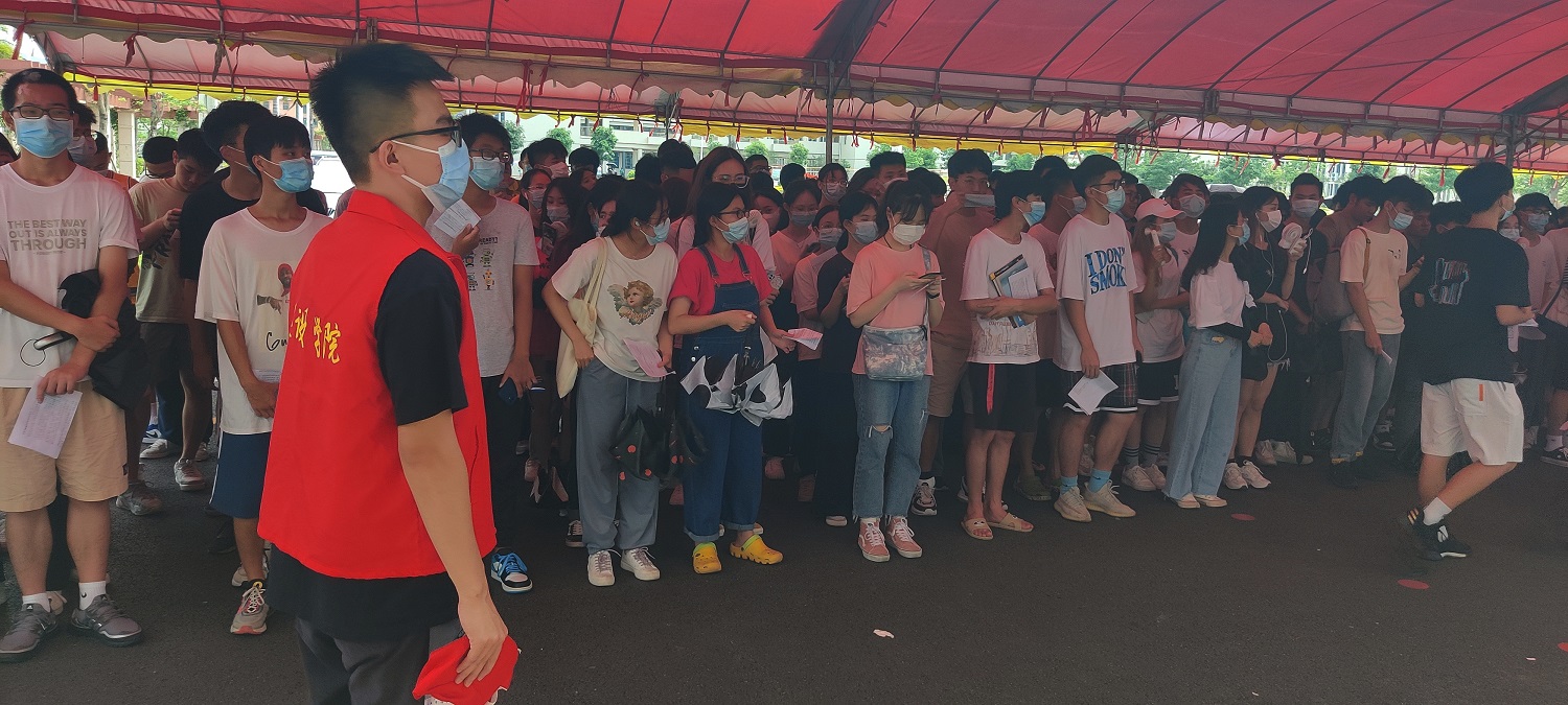 在34℃高温下,伟德国际victor1946志愿者服务在一线,协助医护人员做好预约登记、扫码测温、信息登记、接种指引、维护现场秩序等工作,他们严谨、认真、负责的工作态度受到师生赞誉。