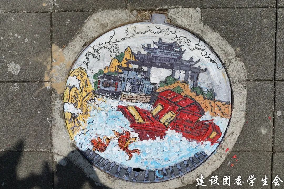 在建党百年来临之际,为展现校园红色精神文明建设成果,建院学子发挥专项特长,以井盖为画布,以胸中对家乡的热爱为画笔,在6栋周围交出了18副美丽的校园涂鸦!此次“建党百年,美好家乡”井盖涂鸦主题活动一经推出,受到了同学们的热烈反响和积极参与,“小马良们”的画作赢得了师生们的满满点赞!