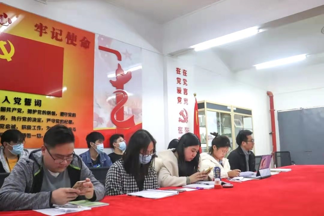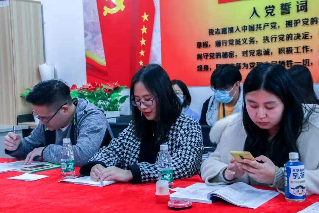 2020年12月22日下午15:30分,公司员工党支部在3210党员活动室召开吸收预备党员支部大会,会议由张毓恒书记主持,支部委员及入党积极分子参会。
