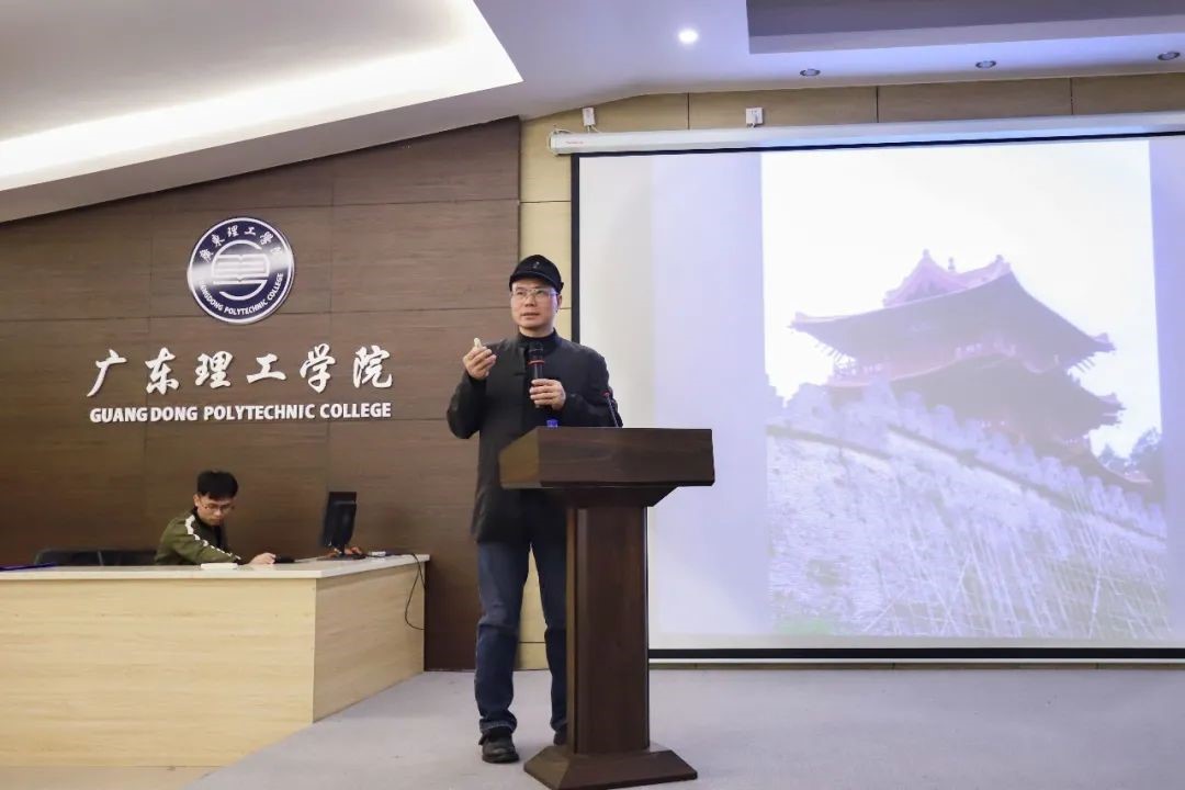 紧接着,李教授通过两广地区的名称为切入点,围绕着岭南建筑设计思想展开授课。他介绍了岭南地域的文化历史并以封开广信塔为例子,强调了色调和设计结构的实用性。此外他还结合了岭南四大园林要素对岭南当代建筑的设计理念进行介绍,提议同学们可借鉴其中精华运用于自身作品里。