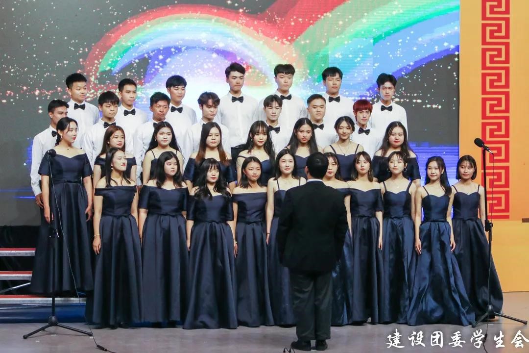 一起合唱,整个会场变成一片欢乐的海洋。
