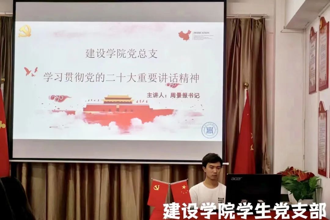 周景报书记带领三十期发展对象深入学习党的二十大重要讲话精神。本次党的二十大的主题是:高举中国特色社会主义伟大旗帜,全面贯彻新时代中国特色社会主义思想,弘扬伟大建党精神,自信自强、守正创新、踔厉奋发、勇毅前行,为全面建设社会主义现代化国家、全面推进中华民族伟大复兴而团结奋斗。