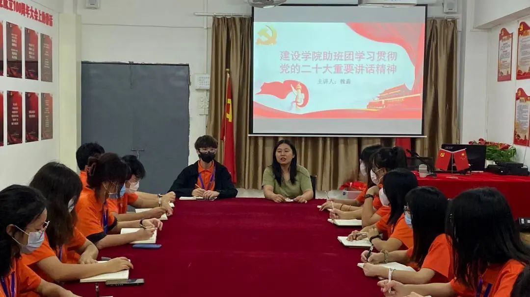 会议伊始,魏淼老师带领助班回顾党的二十大重要讲话精神。同时,魏淼老师强调作为助班应充分发挥思想引领作用、桥梁纽带作用、先锋模范作用,自信自强、守正创新,并对助班提出三点要求: