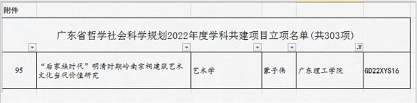 近日,广东省哲学社会科学规划领导小组办公室发布了广东省哲学社会科学规划2022年度学科共建项目立项名单,2022年度全省共立项303项,公司副经理蒙子伟副教授申报的《“后家族时代”明清时期岭南宗祠建筑艺术文化当代价值研究》项目成功立项,单项项目获得资助经费4万元。