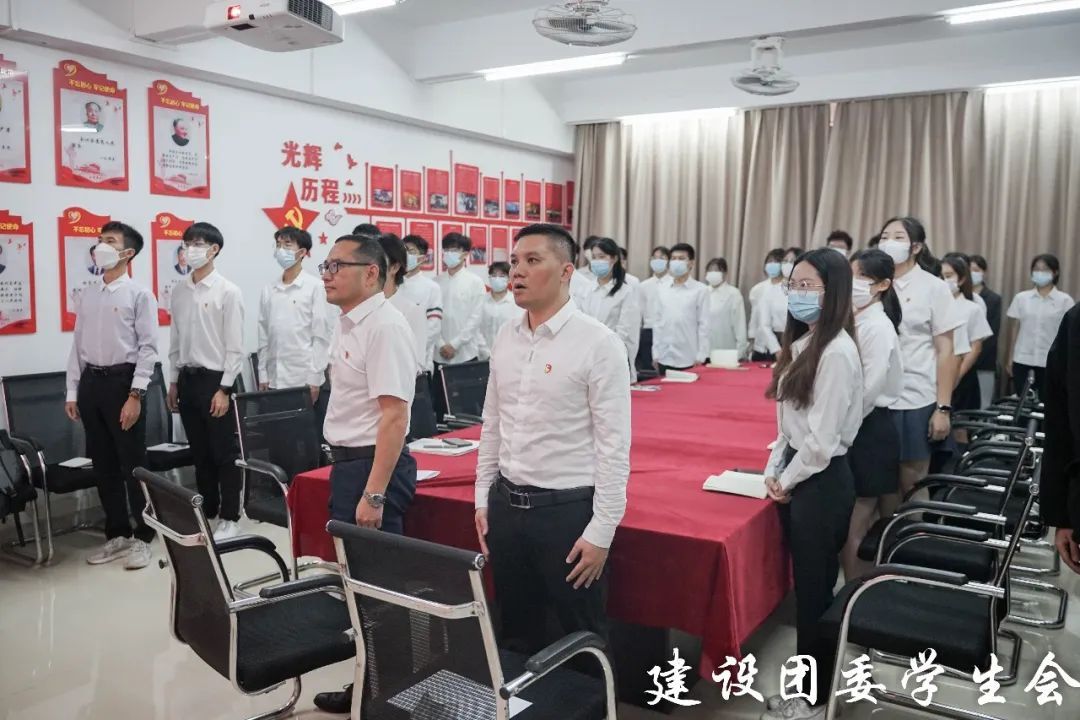 最后,参会成员全体起立,共唱团歌,并于行政楼前合影留念。