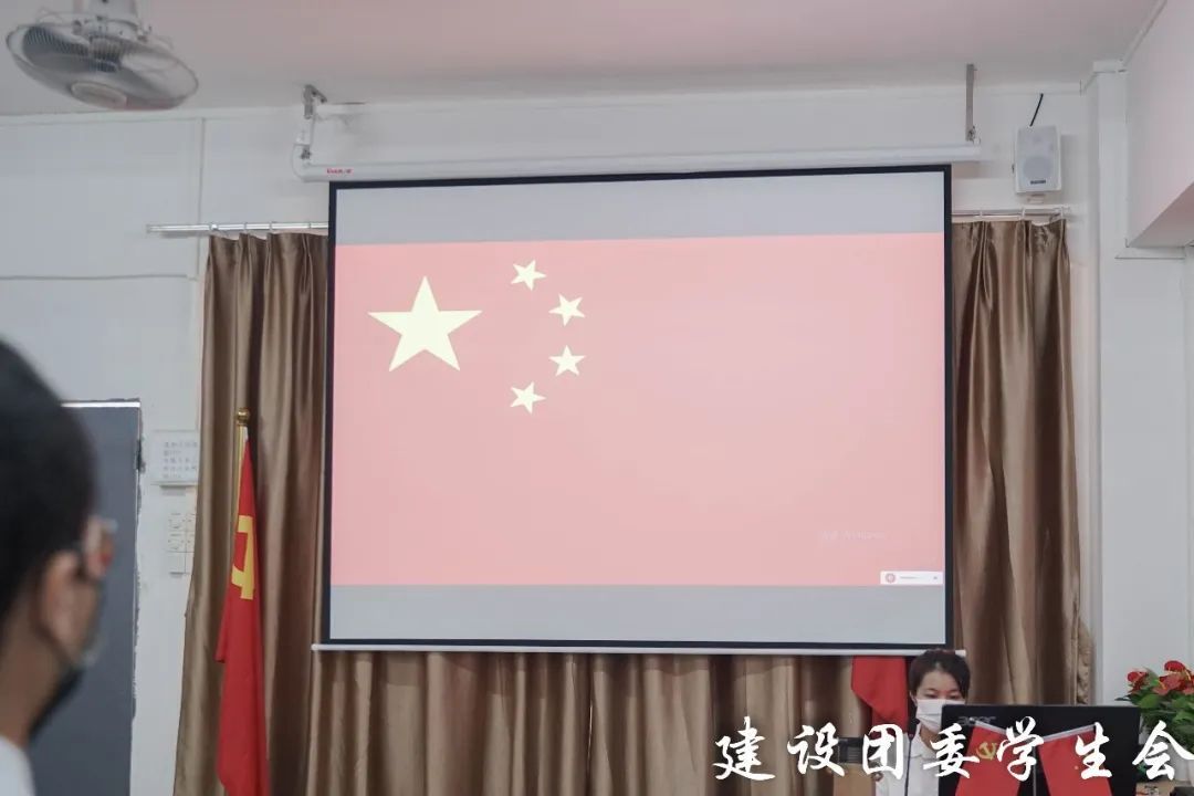 会议开始,全体参会成员起立,奏唱国歌。