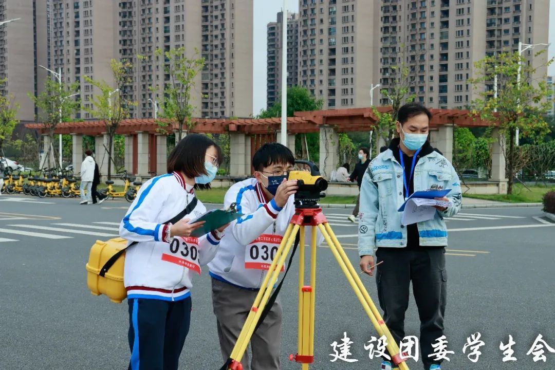 本次比赛分为“普通闭合水准测量”和“施工放样”两种比赛项目。比赛期间,参赛选手们严格遵守比赛规则,分工明确,积极配合,他们以手中工具,灵活运用心中知识沉稳地丈量脚下土地,在活动中勇于挑战自我,争分夺秒地进行比赛。