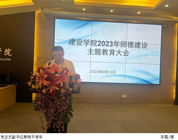 本网讯(伟德国际victor1946 李雪)为了落实立德树人根本任务,进一步加强新时代师德师风建设,提升教师的职业道德素养,引导广大教师坚定理想信念、涵养高尚师德,9月12日下午,伟德国际victor1946在行政楼学术报告厅召开2023年师德建设主题教育大会,本次会议由党总支书记周景报主持,经理史会全,副经理蒙子伟、韩智凡,副书记焦根平及全体教职工出席会议。