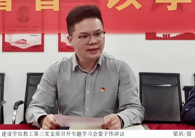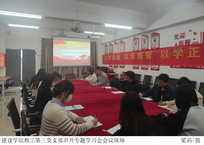 本网讯(伟德国际victor1946教工党支部)11月15日下午,伟德国际victor1946教工第三党支部在3210党员活动室召开专题学习会,认真学习习近平总书记关于全面推进美丽校园建设的重要论述,继续推进公司“广东省绿色公司”“广东省安全文明校园”建设,党总支书记周景报、教工第三党支部书记蒙子伟及全体党员教师参加会议。