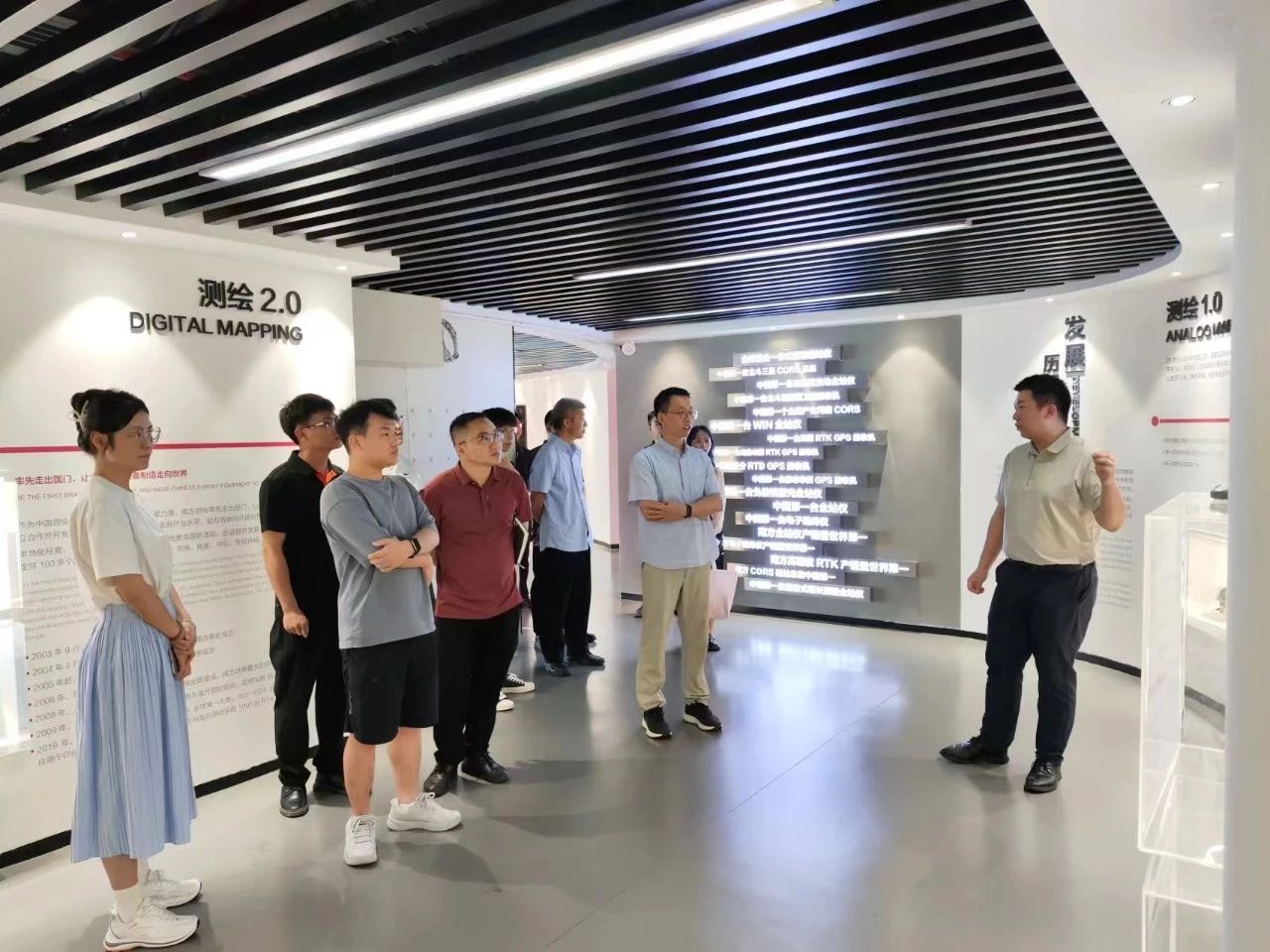 调研第三站是广州南方测绘科技股份公司总部。在南方测绘教学事业部董希彬总经理的引领下,参观了总部的展厅,部分老师参与体验了元宇宙仿真教学。双方就产学研合作展开了探索与讨论。