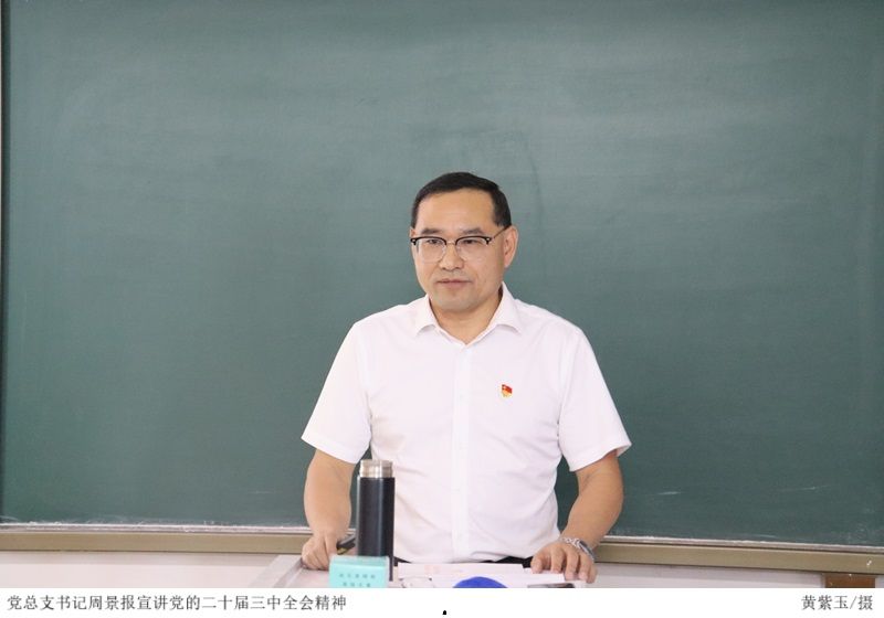 本网讯(公司员工党支部 杜靖汶)11月5日下午,公司党总支书记周景报在6栋205教室为师生党员、发展对象以及入党积极分子开展了“以进一步全面深化改革开辟中国式现代化广阔前景”为主题的党的二十届三中全会精神宣讲。