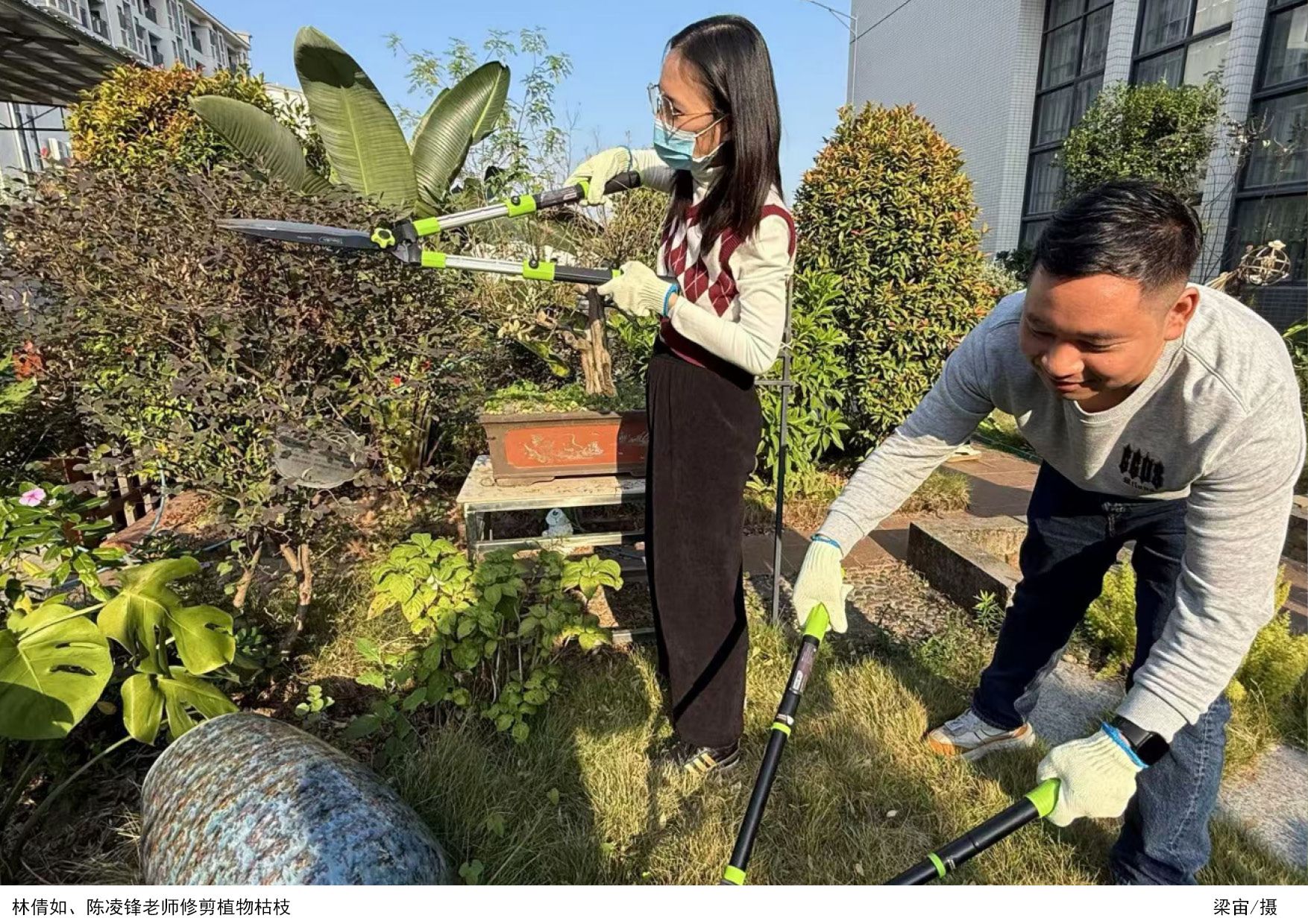 融入教学,增强环保意识。本次专项活动明确了如何将“绿美肇庆”的绿色发展理念融入风景园林专业的日常教学中。通过园林实训场的整理与维护,教研室计划增强员工的环保意识和社会责任感,培养具有绿色设计理念和实践能力的专业人才。