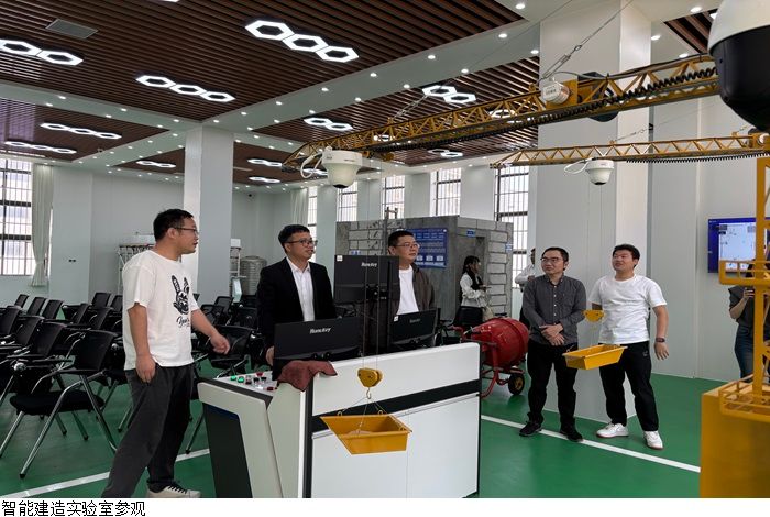 交流会结束后,保定理工公司一行在副经理王金歌等陪同下,参观了公司多个重点实验室,如智能建造实验室、工程力学与结构综合实验室等。他们对实验室中配备的广联达智慧工地平台1.0、智能视频监控系统、塔机监测系统、实测实量系统及实训墙等先进设备表现出浓厚兴趣,并对公司实验室建设给予高度评价。吴亚辉副经理表示:“贵院的实验室建设紧密对接行业前沿,为员工提供了宝贵的实践平台,值得公司借鉴。”
