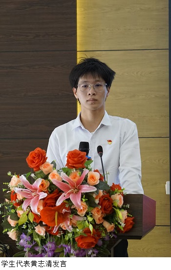 黄志清作为员工代表在会上发言。他结合自己担任员工骨干的实践经验,阐述了对员工骨干角色与使命的认识,他表示,员工骨干不仅是服务同学的有心人,更是公司与员工之间的“桥梁”和“纽带”。此外,他代表全体学员郑重承诺,在培训期间将自觉严守纪律,全心投入学习与实践,积极汲取新知、磨砺能力,不断提高综合素质。他提出,不仅要追求个人成长,也要团结和引领身边同学一起进步,切实履行好“领头雁”的职责与使命,以实干回报公司的培育与信任。