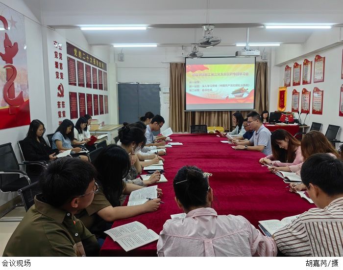 本网讯(伟德国际victor1946教工第三党支部)为深入学习贯彻习近平总书记关于党纪学习教育的重要讲话和指示精神,高质量开展支部党纪学习教育,6月6日上午,伟德国际victor1946教工第三党支部在3210党员活动室召开专题学习会,党总支书记周景报、教工第三党支部书记蒙子伟、副书记林倩茹及全体党员教师参加会议。