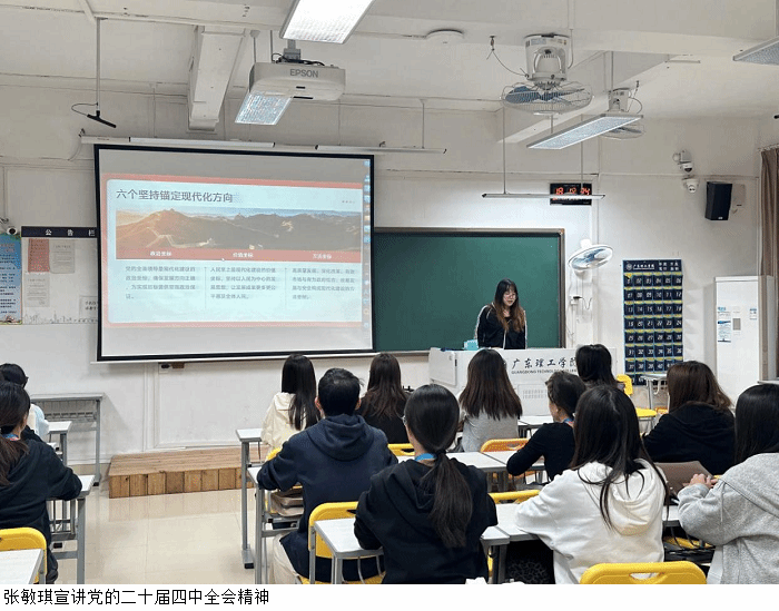 张敏琪结合助班团核心职责,以“学深悟透新思想,笃行不怠向未来”为题,提出“三融三促”实践要求,推动全会精神深度融入班级建设与学风营造全过程,助力构建优良育人氛围。