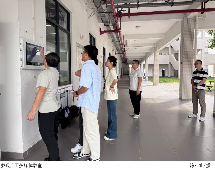 10月19日,调研团队应邀访问广东工业大学揭阳校区,重点学习该校在实验室建设和多媒体教室管理方面的先进经验。在广东工业大学网络中心张智维老师的陪同下,调研团队参观了智慧课室和实验室设施。广东工业大学揭阳校区在信息化建设和智慧教学方面的创新实践给调研团队留下了深刻的印象。
